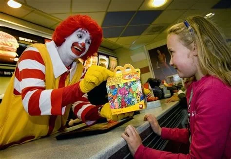 Iedere zondag na een bezoek aan opa en oma smeekte ik mijn ouders om naar de McDonald's te gaan. Niet omdat ik het eten zo lekker vond, maar omdat ik een Happy Meal wilde. Waarom? Vanwege de speeltjes. Iedere maand hadden ze een nieuwe serie speeltjes, en natuurlijk moest je ze allemaal hebben. McDonald’s heeft als motto klanten te werven op de vroegst mogelijke leeftijd, zodat je ze voor de rest van hun leven verslaafd kan maken aan je producten. Hoe doen ze dat dan precies? Met Ronald McDonald, een clown die al sinds de jaren ’70 vrolijk in zijn speciaal ontworpen felgekleurde outfit vrolijk rondhuppelt. Met de Happy Meal-doosjes, compleet met speeltjes die zijn gekoppeld aan populaire kinderfilms. Met felle, primaire kleuren in McDonald’s-logo’s, verpakkingen, en restaurants. Kleuren die speciaal zijn gekozen om de aandacht van jonge kinderen te trekken. Psychologisch gezien zijn deze kleuren aantrekkelijk en gemakkelijk te herkennen voor jonge kinderen, wat ervoor zorgt dat zelfs peuters de McDonald's-verpakkingen kunnen identificeren. En als je eenmaal binnen bent laten ze je nooit meer gaan…